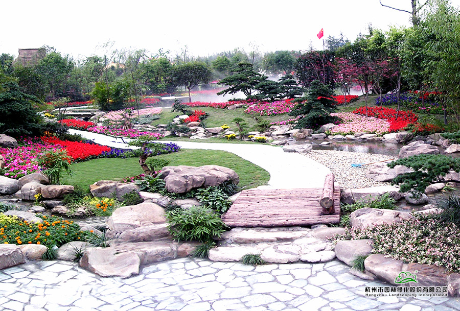第六屆中國花博會之浙江園,又名花漫錢塘。占地面積1420平方米,呈自然式布局,全園以浙江山水為背景,以母親河錢塘江奔流入海為主線,一灣流水貫穿全園,"錢江源"、"晴空海蜃"兩大景觀交相輝映。園內(nèi)綠樹盎然,花漫遍地,洋溢著浙江的朝氣與活力,體現(xiàn)了浙江自然山水、人文歷史、經(jīng)濟社會的和諧。