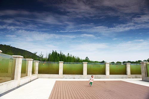 天師廣場:和天師嶺、創(chuàng)教路、鶴鳴臺等景點一起,集中展示張道陵天師歷經(jīng)得道、修煉、斗法、立教、升天,羽化成仙的過程,再現(xiàn)張?zhí)鞄煹男薜乐啊V場呈半圓形,設(shè)有特色鋪裝、臺階花壇、觀景錯層平臺等硬性設(shè)施,觀景平臺與水上世界自然融為一體,伴著徐徐微風(fēng),云龍湖的美景盡收眼底。