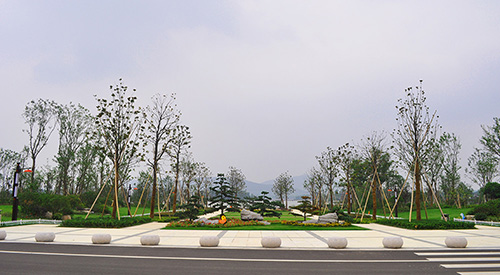 云龍湖珠山景區(qū)景觀綠化工程總占地面積80公頃,全長3.6公里,施工面積63萬余平米,施工內(nèi)容主要包括土方造型、綠化種植、廣場園路鋪裝、道教主題廣場、沉水廊道、木棧道、景石營造、古建筑等。設(shè)計主題突出"徐州新天地和珠山新印象",總體風(fēng)格體現(xiàn)"人文、生態(tài)、活力",共分為濱湖主入口廣場區(qū)、水杉林游覽區(qū)、濱湖休閑景觀區(qū)、水生植物游覽區(qū)等9個功能區(qū)及觀魚沉水廊道、道教主題廣場、水杉林大道、沿湖木質(zhì)棧道等多個景觀節(jié)點。工程施工共分三個標(biāo)段,其中,杭州市園林綠化股份有限公司承建的是二標(biāo)段。