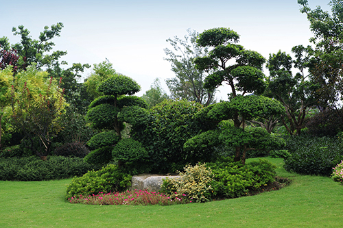 在項(xiàng)目主入口、次入口、中心景觀及一些重要景觀節(jié)點(diǎn),黑松、女貞、水蠟、五針?biāo)?、紅花檵木、紫薇等造型樹(shù)木,宛如萬(wàn)綠叢中的一點(diǎn)“紅”,彰顯出獨(dú)特的氣韻與品味,起到畫(huà)龍點(diǎn)晴的效果。
