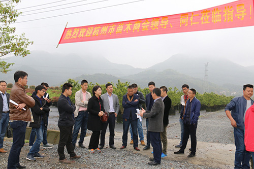 2016年4月8日,春日暖陽融融,苗圃里樹木挺拔蔥郁、繁花盛開似錦,商會特意組織了60余名會員赴風景優(yōu)美的余杭徑山考察三家苗圃和一個生態(tài)園。