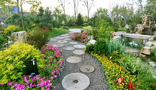海綿城市是指城市能夠像海綿一樣,在適應(yīng)環(huán)境變化和應(yīng)對(duì)自然災(zāi)害等方面具有良好的“彈性”,下雨時(shí)吸水、蓄水、滲水、凈水,需要時(shí)將蓄存的水釋放并加以利用。展園內(nèi)采用碎石鋪就的“茶馬古道”,既能有限地補(bǔ)充地下水,又有一定的地表徑流削減作用。另外,園內(nèi)水池邊設(shè)置植被緩沖帶,通過(guò)植物攔截及土壤下滲作用有效減緩地表徑流流速,并去除徑流中的部分污染物,體現(xiàn)了海綿城市理念的截污凈化功能。