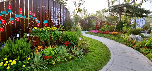 考慮到銀川的干燥氣候,垂直綠化墻植物的保濕成為難題?!罢憬瓐@”垂直綠化墻以無(wú)紡布為墻體材料,使用保濕性強(qiáng)的基質(zhì),優(yōu)選植物種類,同時(shí)搭配滴灌系統(tǒng),保證了綠化墻鮮花擁簇的景象。展園內(nèi)的垂直綠化墻設(shè)計(jì)簡(jiǎn)潔、曲線優(yōu)美,與以錢塘江文化為主題的背景墻相互映襯,共同展現(xiàn)了新時(shí)期浙江園林景觀的不斷發(fā)展與創(chuàng)新。