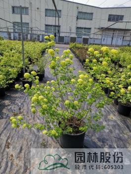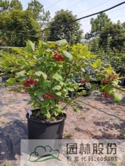 忍冬科莢蒾屬,落葉灌木,高可達4米。葉掌狀,通常三裂,秋季葉色轉(zhuǎn)紅,特別艷麗。聚傘花序白色,不孕花末期會呈現(xiàn)粉色,花徑較大,花藥呈黃色,花期4-5月。果實較大,形似櫻桃,紅艷誘人,給人以強烈視覺沖擊力,能形成園林觀賞的視覺焦點。觀果期長,可達4個月之久。適應(yīng)性強,通??勺匀怀尚?。一年施肥3次,早春萌芽前,花后及秋季。適合工程應(yīng)用與庭院觀賞。
