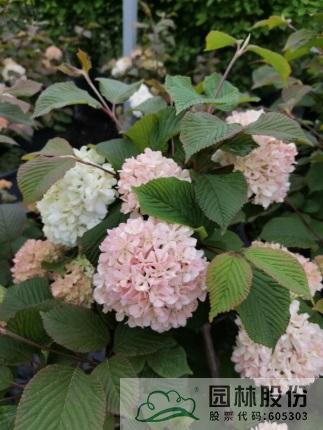 忍冬科莢蒾屬,落葉灌木,國內(nèi)從日本引進,株高可達2.5-3m。新葉成暗紅色,后期會慢慢褪去,呈綠色。整個花序都是不育花,球形,花苞粉綠色,開放后淡粉色,最后變成白色。花期4月初到5月初。秋天的樹葉顏色多變,像油畫調(diào)色板一樣絢麗多彩。它適應(yīng)我國大部份地區(qū)種植,病蟲害較少。冬季至早春可修剪。一年施肥3次,早春萌芽前,花后及秋季。適合園藝盆栽或庭院觀賞。