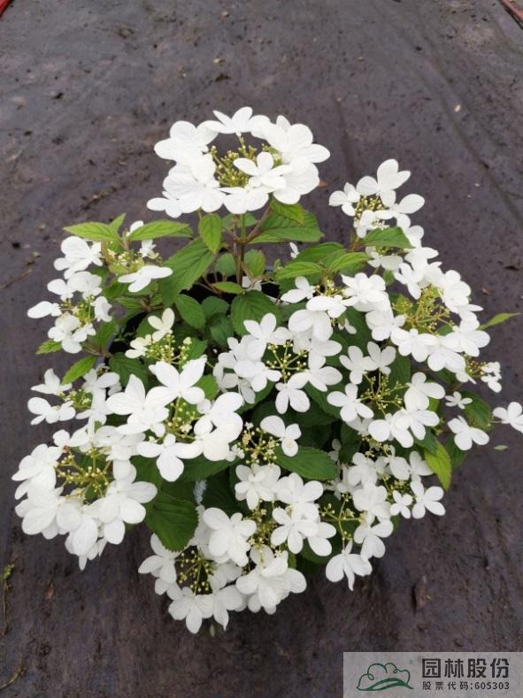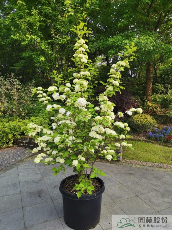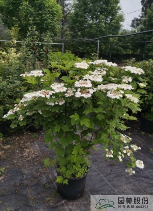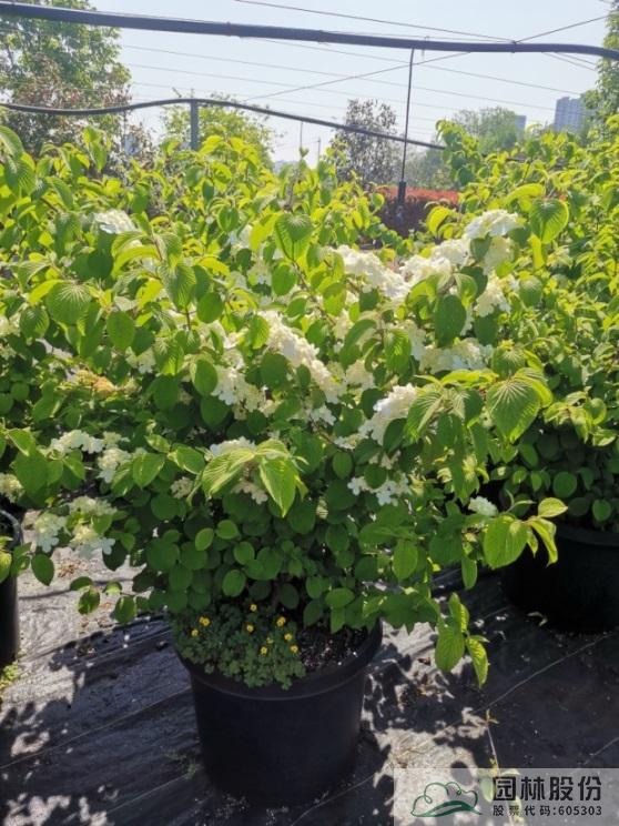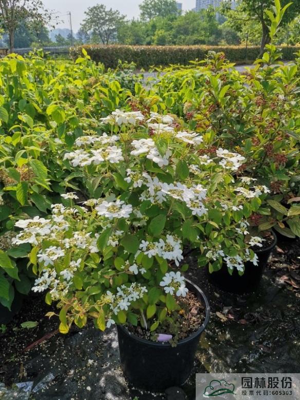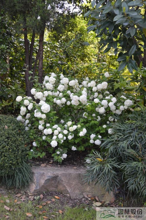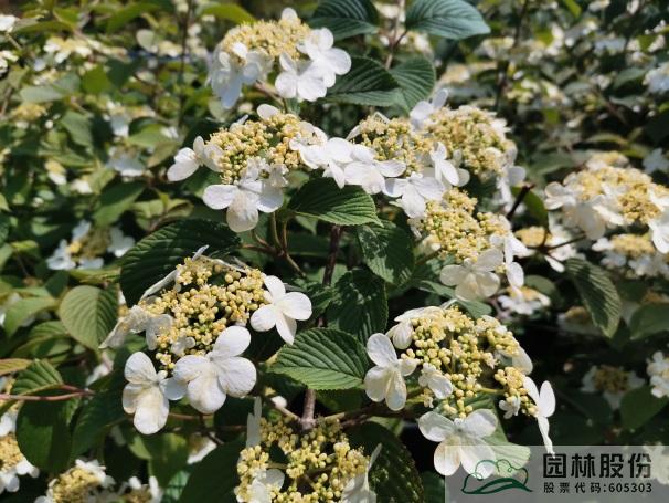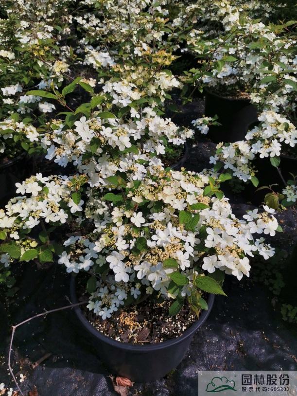 忍冬科莢蒾屬,落葉灌木,樹姿舒展?;ㄐ虬肭蛐?,全為不孕花,開花時滿樹白花猶如積雪壓枝,高潔素雅,花謝后則綠葉如碧,無論花葉均具有較好的景觀效果。生長強健,喜歡散射光環(huán)境,適合工程應(yīng)用或庭院觀賞。