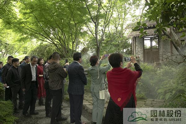 在李壽仁的帶領下,與會人員首先參觀了畫境·青山湖花園中心室外景觀展示區(qū)。五月的花園中心,綠意盎然,繁花綻放,鋪展開一幅生態(tài)自然、清新怡人的風景畫卷,引來大家的不斷贊嘆,紛紛直呼“太美了!”“太漂亮了!”