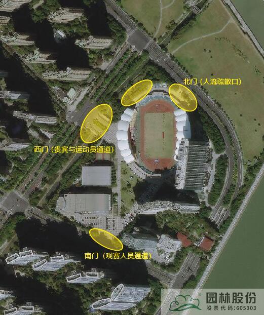 ① 西門(貴賓與運(yùn)動(dòng)員通道):足球文化景觀小品+特色花境+蒔花裝點(diǎn)