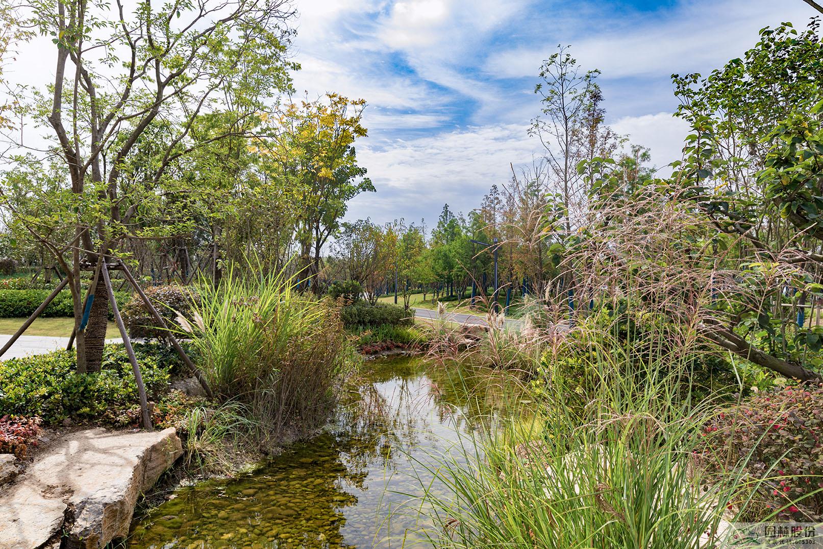 運(yùn)河灣公園是一個(gè)以海綿城市理念打造的景觀公園,從旱溪、濕塘等形式豐富的海綿設(shè)施,到各類透水鋪裝材料的應(yīng)用,海綿城市理念貫穿于公園建設(shè)的各個(gè)環(huán)節(jié)。