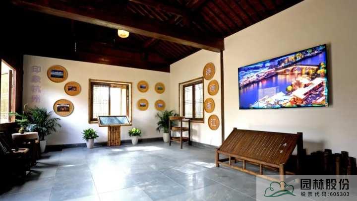 在屋內(nèi),是一個室內(nèi)展廳,它以現(xiàn)代化數(shù)字媒體手法和圖文展板來為觀眾講述來自浙江的故事。展廳內(nèi)容共有三個部分,為“印象杭州”“詩畫浙江”“美麗家園”,通過豐富的表現(xiàn)方式,展現(xiàn)了浙江發(fā)展成就,描繪了一幅鄉(xiāng)村振興的美好圖景。
