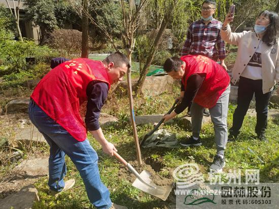 同時,在上城區(qū)人大代表、杭州市園林綠化股份有限公司董事長吳光洪的大力支持下,不僅精心挑選苗木,還派出了專業(yè)技術(shù)指導,為和諧嘉園南苑群眾辦實事,為小區(qū)增色彩。在社區(qū)新時代文明實踐志愿者們的共同努力下,此次南苑的植樹活動共種植銀姬小蠟、紫薇、杜鵑等品種綠植二十余棵。