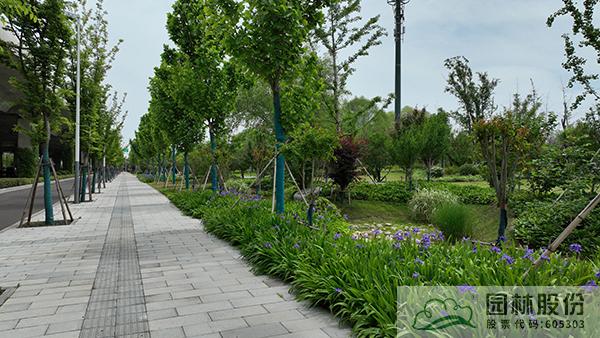 道路分車帶深度80-100cm,部分寬度較窄僅60cm左右,底部均為混凝土等硬質(zhì)材料,透水性較差。回填外購種植土后,為保證植物成活率,施工時對外購種植土進行改良,通過拌和腐殖質(zhì)營養(yǎng)土、增加施肥頻率等手段,改善土壤團粒結(jié)構(gòu),激活土壤生物活性,使其具有疏松透氣、保水保肥的特性,極大地提高了植物的成活率,保證了后期的景觀效果。