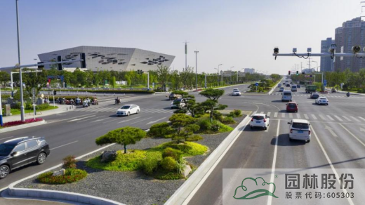 打破原有道路植物種植形式單一,品種較少,冬季落葉草本花卉較多,與道路西側(cè)景觀難以呼應(yīng)的不足,改造后的中央隔離帶,在道路兩端島頭位置,用國產(chǎn)造型黑松替代性價(jià)比不高的日本造型黑松,以造型黑松樁點(diǎn)綴,中間段則采用常綠植物和自然式花境,以大小組團(tuán)形式進(jìn)行植物造景,在豐富植物品種和種植手法的同時(shí),滿足了冬季景觀效果,并能與道路西側(cè)景觀有機(jī)融合。