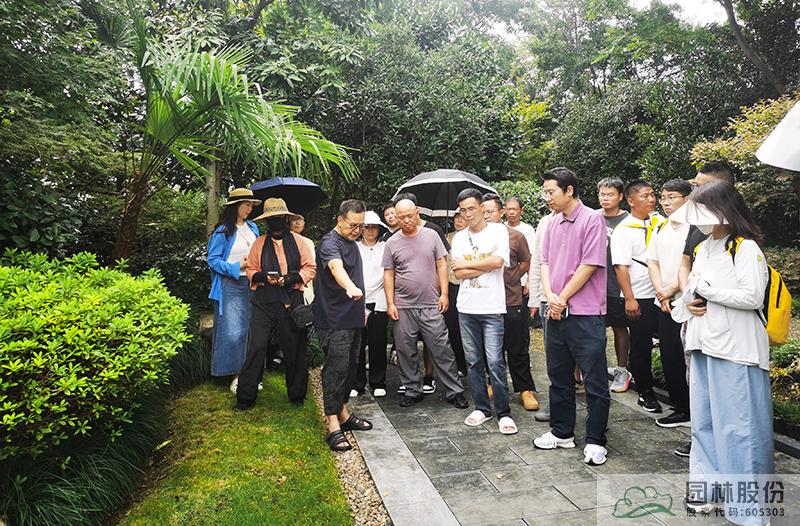 下午,學員們實地觀摩了占地近2萬平方米的室外景觀展示區(qū)?,F(xiàn)代中式、自然中式、苔蘚園、巖石園、日式庭院等風格迥異的主題園,構成了一部立體的園林設計與施工的“教科書”。