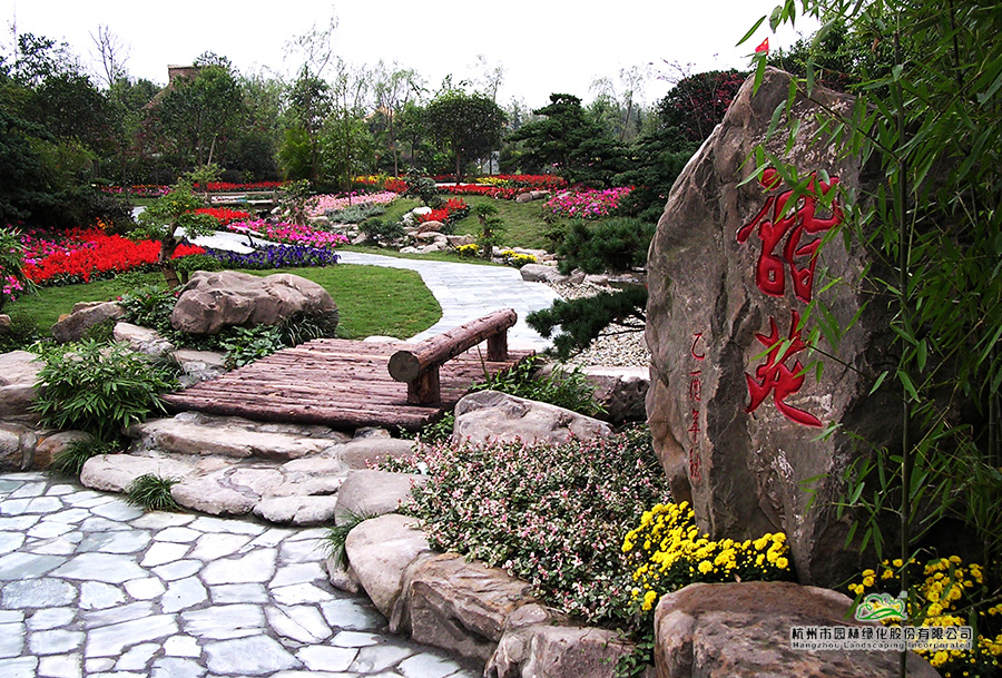 第六屆中國花博會之浙江園,又名花漫錢塘。占地面積1420平方米,呈自然式布局,全園以浙江山水為背景,以母親河錢塘江奔流入海為主線,一灣流水貫穿全園,"錢江源"、"晴空海蜃"兩大景觀交相輝映。園內(nèi)綠樹盎然,花漫遍地,洋溢著浙江的朝氣與活力,體現(xiàn)了浙江自然山水、人文歷史、經(jīng)濟社會的和諧。