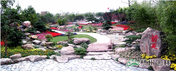 第六屆中國花博會之浙江園,又名花漫錢塘。占地面積1420平方米,呈自然式布局,全園以浙江山水為背景,以母親河錢塘江奔流入海為主線,一灣流水貫穿全園,“錢江源”、“晴空海蜃”兩大景觀交相輝映。園內(nèi)綠樹盎然,花漫遍地,洋溢著浙江的朝氣與活力,體現(xiàn)了浙江自然山水、人文歷史、經(jīng)濟(jì)社會的和諧。
