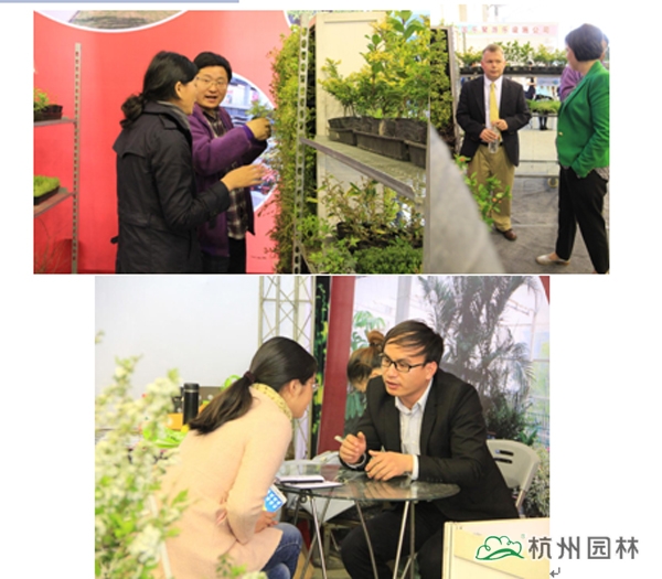 展會的另一側(cè),還布置了畫境·青山湖花園中心今年力推的第三代無土綠墻,它環(huán)保、干凈、便于安裝的優(yōu)點不僅引來了家庭客戶及業(yè)內(nèi)客戶,還吸引了不少國外同行的駐足。另外,杭州園林的展位還引來了媒體記者的關(guān)注,花園中心負責人孫文博在接受記者采訪時,對花園中心的經(jīng)營項目、推廣方式、未來的發(fā)展方向等問題逐一作出了解答。