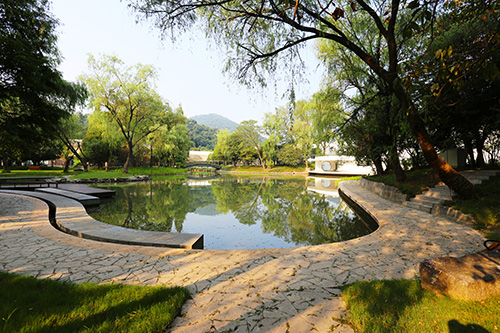 項(xiàng)目位于西湖區(qū)文一西路1000號(hào),走在校園內(nèi),入目所及,豐富的植物組團(tuán)與景石搭配的小景清新而自然;蜿蜒的園路旁,青青翠竹營(yíng)造出幽靜的意境;溪水邊,古樸的亭子靜靜佇立成一道風(fēng)景,柳楊依依,花兒綻放,植物的倒影在水中清晰如畫(huà),一幅婉約的江南水景圖徐徐展現(xiàn)在眼前。