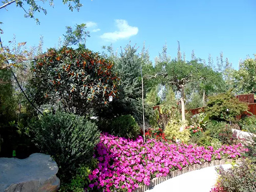 花博會(huì)開(kāi)放時(shí)間是9月份,為配合開(kāi)園需要,根據(jù)不同植物的開(kāi)花特性及要求,采取相應(yīng)的措施,確保植物的最佳觀賞效果。桂花是杭州市市花,是集綠化、美化、香化于一體的優(yōu)良園林樹(shù)種,一般在仲秋時(shí)節(jié)綻放,“浙江園”的桂花全部精選自杭州畫境種業(yè)有限公司,提前運(yùn)送至銀川之后,利用當(dāng)?shù)氐牡蜏丨h(huán)境誘使其完成花芽分化,在開(kāi)園時(shí)營(yíng)造了桂花滿樹(shù)、滿園飄香的氛圍。八仙花又名繡球,花大色美,是長(zhǎng)江流域著名觀賞植物,在明、清時(shí)代建造的江南園林中就栽有八仙花。特別是八仙花‘無(wú)盡夏’具有多次開(kāi)花的特點(diǎn),項(xiàng)目人員通過(guò)修剪、培育,促進(jìn)其花芽的再次分化,使展園內(nèi)的八仙花處于生長(zhǎng)繁茂、花團(tuán)錦簇的良好狀態(tài)。此外,還結(jié)合公司“一種紅楓快速成景方法”等專利,運(yùn)用摘葉等形式促進(jìn)槭樹(shù)科植物萌發(fā)新葉,為九博會(huì)的開(kāi)幕增添新的色彩。