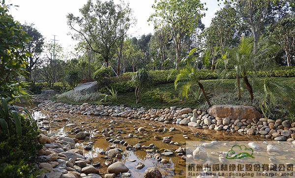 “項目將海綿城市理念融入公園建設(shè),園路鋪裝采用透水混凝土,下雨時雨水可快速滲透,路面不積水;旱溪景觀則在下雨時蓄水,雨水可用于植物的日常澆灌,干旱時,鋪滿鵝卵石的水底又與周邊豐富的植物營造出另一種園林意境。”隨著葉偉華的介紹,項目建設(shè)中許多隱藏的細節(jié)不斷展現(xiàn),生態(tài)造園的理念進一步深入人心。