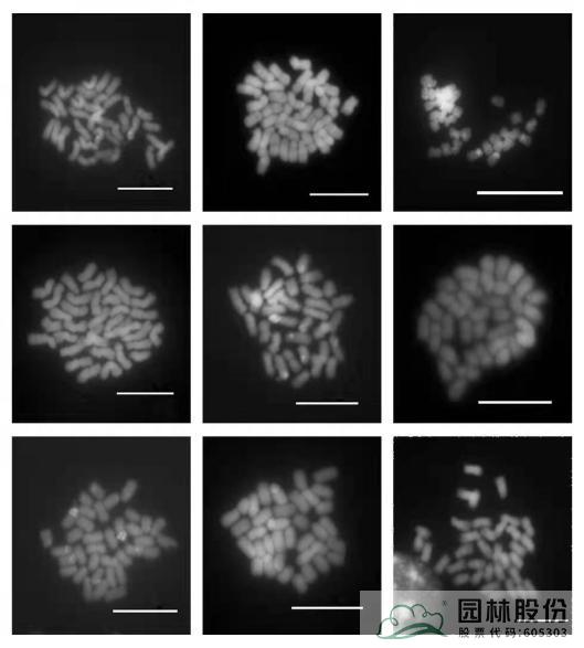 2019年在上海市科委重大攻關(guān)項(xiàng)目《八仙花高質(zhì)量苗木標(biāo)準(zhǔn)化繁育與栽培技術(shù)》(編號(hào):19DZ1203503)的資助下,杭州市園林綠化股份有限公司浙江園林資源與環(huán)境技術(shù)研究院開展了江南地區(qū)繡球新品種的專項(xiàng)培育,項(xiàng)目通過對(duì)國(guó)內(nèi)外引進(jìn)的92種繡球種和品種進(jìn)行綜合評(píng)價(jià),再根據(jù)染色體分析,篩選出21個(gè)具有觀賞特色或新枝開花或高抗性的資源作為親本,包括14個(gè)大葉繡球品種、3個(gè)喬木繡球品種、3個(gè)圓錐繡球品種、中國(guó)繡球原種和蠟蓮繡球原種。