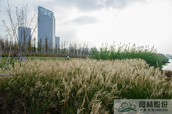 植物選擇從生態(tài)及品種多樣性出發(fā),遵照生態(tài)適應(yīng)性選用鄉(xiāng)土品種,喬木類包括香樟、濕地松、黃山欒樹等,地被主要有大濱菊、月見草、細葉芒、蘆葦、狼尾草等,合理搭配,在空間、色彩、節(jié)奏方面獨具匠心,打造了高低錯落、疏密有致的和諧景觀。