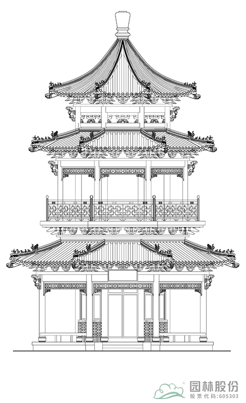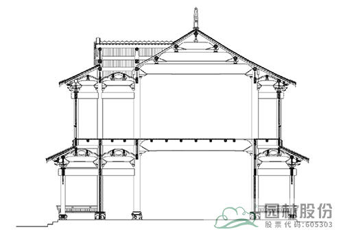 3.尺度比例:依據(jù)明清工程做法確定主體構(gòu)架、屋頂結(jié)構(gòu)、維護結(jié)構(gòu)、臺基地面和裝飾構(gòu)件五部分的樣式、比例、材料選擇等,使建筑與周圍的景觀相協(xié)調(diào)。