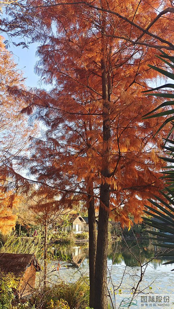 在初冬的日子里,怎能少了水杉、池杉、水松這類落葉針葉樹呢。遠(yuǎn)看,褐色的枝葉、豎向的線條,滿滿的都是初冬的靜謐。如果在林下的園路穿梭,還能看到細(xì)細(xì)密密的落葉灑滿林間,絲絲縷縷的陽光灑落進(jìn)來,好希望時間一直停留在這一刻。