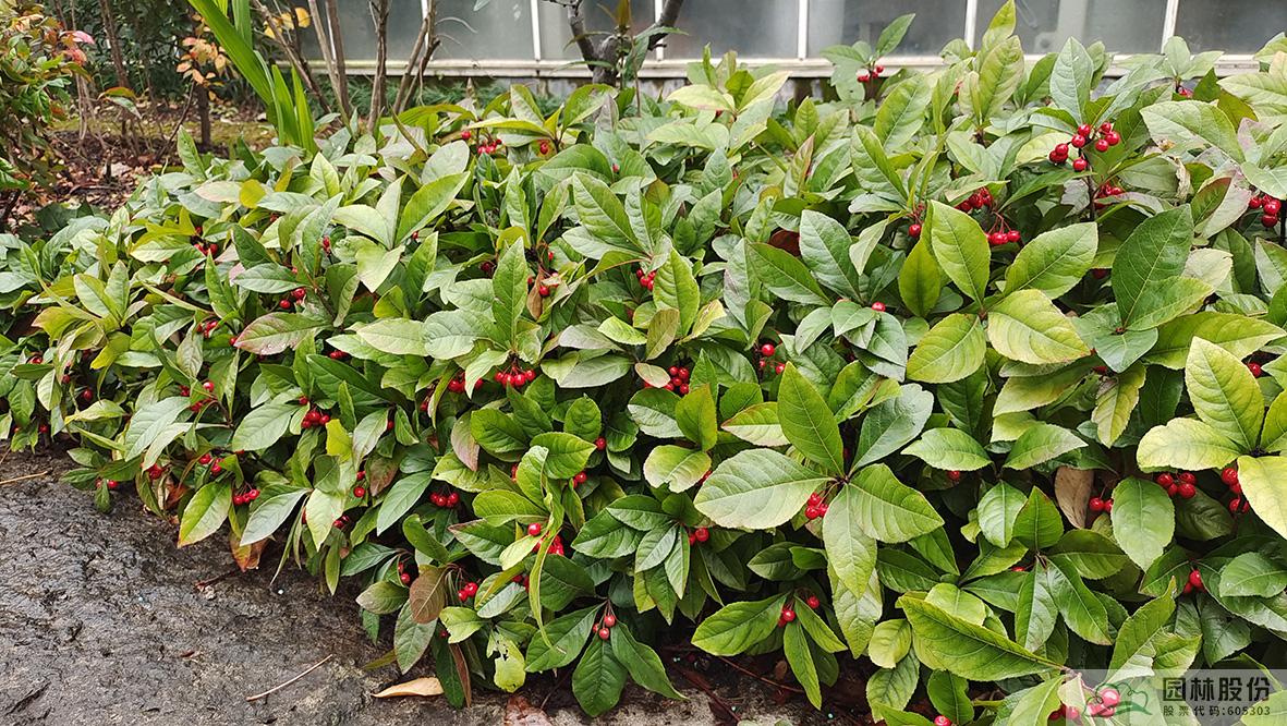 紫金牛的紅果偷偷探出葉外,如同俏皮的孩童